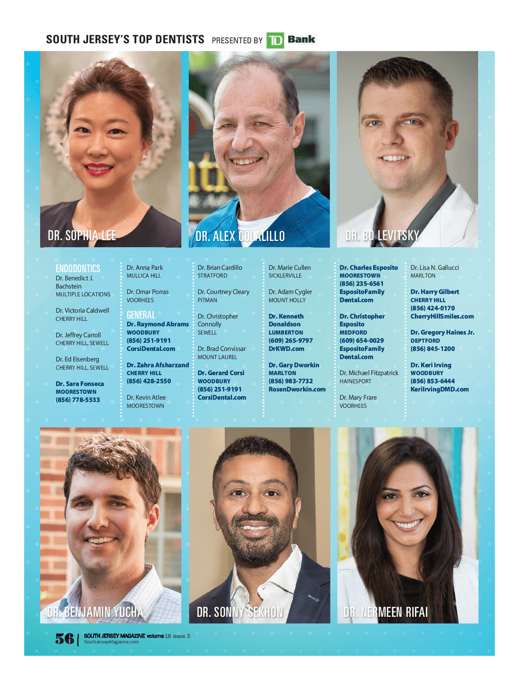 Dr. Sophia Lee graduated from the University of Pennsylvania School of Dental Medicine in 2002 and has proudly called South Jersey home ever since. She loves getting to know her patients and is dedicated to creating a welcoming, comfortable experience for everyone she treats. With advanced training in cosmetic dentistry, implantology, and endodontics, Dr. Lee continues to learn from some of the nation’s top dentists to provide the best care possible.